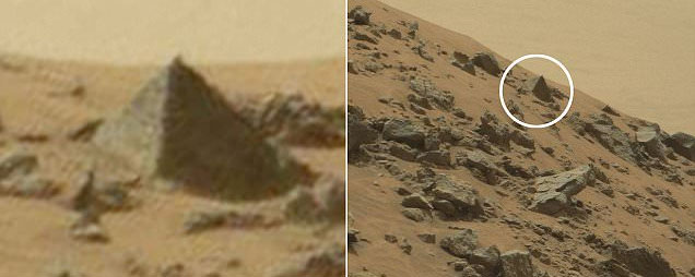 In their latest bizarre claim, conspiracy theorists say they have found a replica of one of Egypt's Great Pyramids on Mars. Citing the "near-perfect design and shape", they argue the "pyramid" is evidence that an ancient civilisation once lived on the red planet. While the pyramid is believed to be "car-sized", alien-hunters say it may be just the tip of a much larger structure buried beneath.