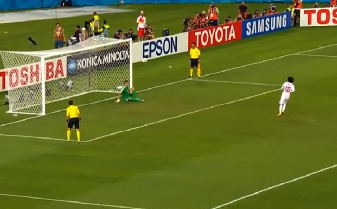 أحرز لاعب وسط منتخب الإمارات عمر عبد الرحمن "عموري" ركلة جزاء على الطريقة العالمية في شباك نظيره منتخب اليابان، في المباراة التي تأهل على إثرها "الأبيض" إلى نصف نهائي نهائيات كأس آسيا 2015 المقامة في أستراليا.