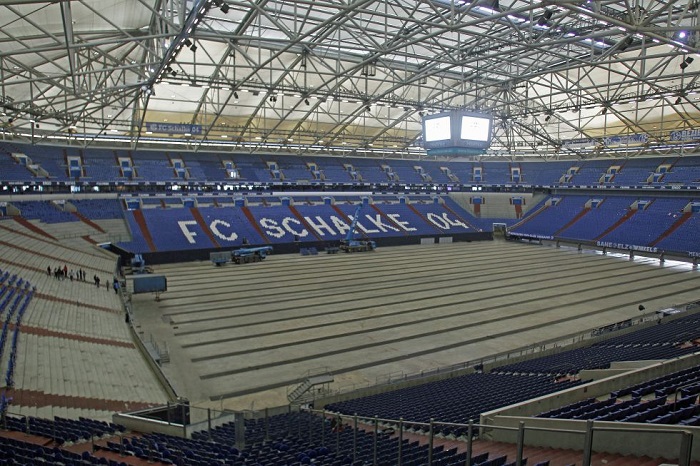ويعمل فريق متخصص كلف النادي نحو 12 ألف يورو، على إزالة العشب من أرضية الملعب، ومن ثم يدخل بعد ذلك في مرحلة إعادة التركيب الي قد تستغرق أكثر من 12 ساعة، الأمر الذي يهدد بسلامة إعادتها لاسيما وأن مدينة غيلسنكيرشن تشهد مناخاً بارداً للغاية هذه الأيام يتراوح بين 2 درجة وأدني من الصفر.