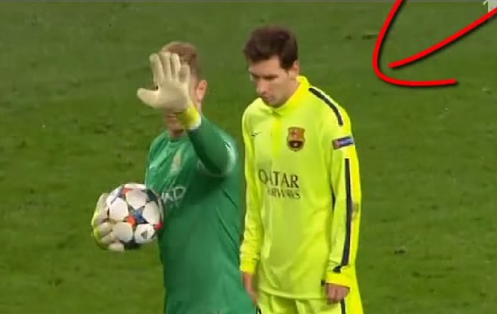 قام النجم الأرجنتيني لفريق برشلونة خلال مباراة فريقه ضد مانشستر يونايتد مساء الثلاثاء بالوقوف متلصصا خلف الحارس جو هارت في محاولة لخطف الكرة حين ما يضعها الحارس على الأرض لتسديدها.