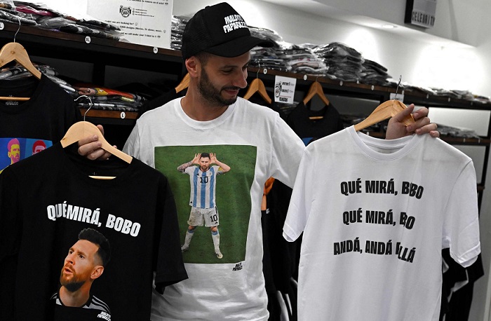 أما أغلبية المشجعين، فإنهم يقبلون على شراء المنتجات التي طُبعت عليها العبارة إلى جانب وجه ميسي، مثل الأكواب، والقمصان، وحمّالات المفاتيح.