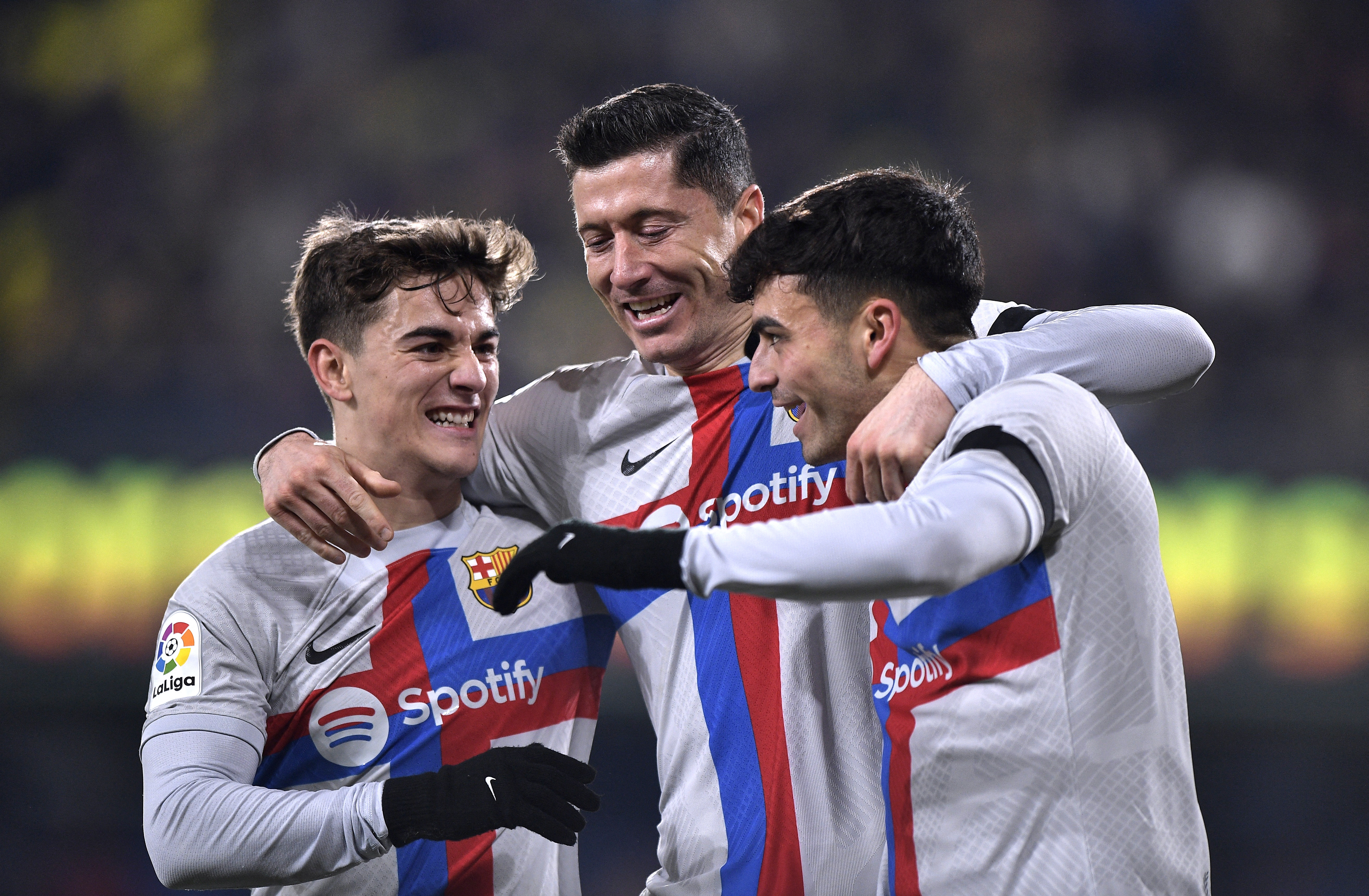 ونجح برشلونة في افتتاح التسجيل إثر هجمة منسقة وتبادل رائع للكرة بتمريرات قصيرة ولمسة واحدة بين الهولندي فرينكي دي يونج والبرازيلي رافينيا وليفاندوفسكي الذي مررها الى بيدري عند مشارف المنطقة، فهيأها الأخير لنفسه وتوغل قبل أن يسددها بيمناه على يسار رينا (18).