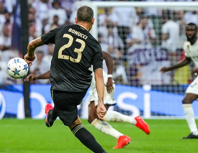 وشارك بونوتشي أساسيا في المباراة التي حل فيها فريقه ضيفا على ريال مدريد الإسباني في "استاد سانتياجو برنابيو".