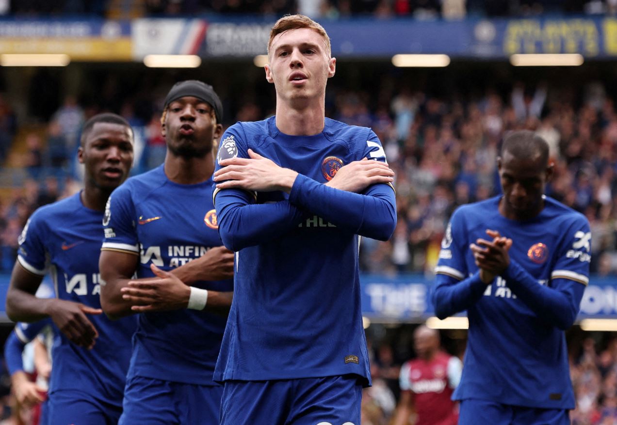 استهل هداف تشيلسي كول بالمر المنتقل إليه مطلع الموسم الحالي قادماً من مانشستر سيتي التسجيل مستغلا فشل دفاع وست هام في تشتيت إحدى الكرات فوضعها داخل الشباك (15).