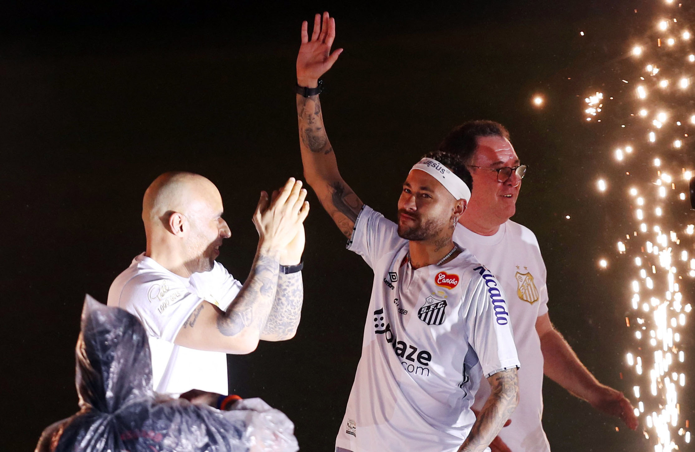 وملأ ما يقرب من 20 ألف مشجع لفريق سانتوس مدرجات ملعب فيلا بيلميرو تحت المطر خارج ساو باولو للاحتفال بعودة نيمار (32 عاما).