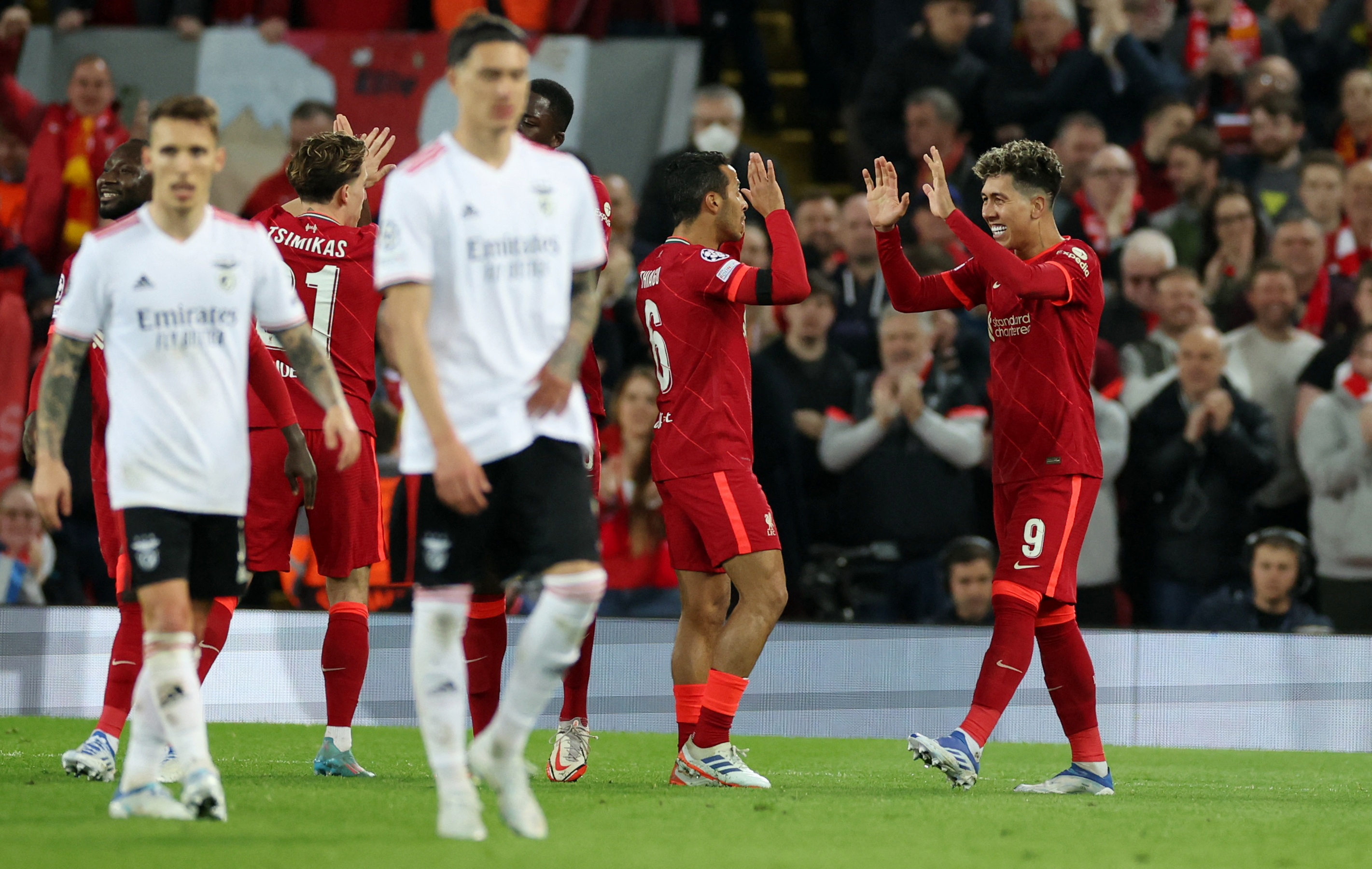 وافتتح ليفربول التسجيل عبر المدافع الفرنسي ابراهيما كوناتيه (21) فيما عادل غونزالو راموش لبنفيكا (32)، قبل أن يسجل البرازيلي روبرتو فيرمينو ثنائية لأصحاب الارض (55 و65). وحاول بنفيكا تحقيق العودة التي لم تكتمل بهدفي البديل الاوكراني رومان ياريمشوك (73) والاوروغوياني داروين نونييس (82).