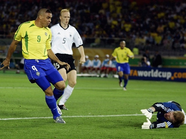 وتوج رونالدو بطلا لكأس العالم بعدما أحرز هدفي البرازيل في الانتصار 2-0 على ألمانيا في النهائي عام .2002